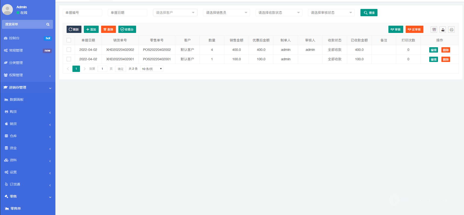 一款基于FastAdmin+ThinkPHP+Layui开发的进销存管理系统,帮助中小企业实现进销存管理规范化,此系统能为你解决四大方面的经营问题:1.采购管理2.销售管理3.仓库管理4.资金管理,适用于:服装鞋帽、化妆品、机械机电、家具装潢、建材行业、快销品、母婴用品、办公用品、汽配汽修、生鲜农贸、手机通讯、数码家电、医药用品、制造业、信息技术服务行业等。提供全部无加密服务端和前端源代码,支持私有化部署。