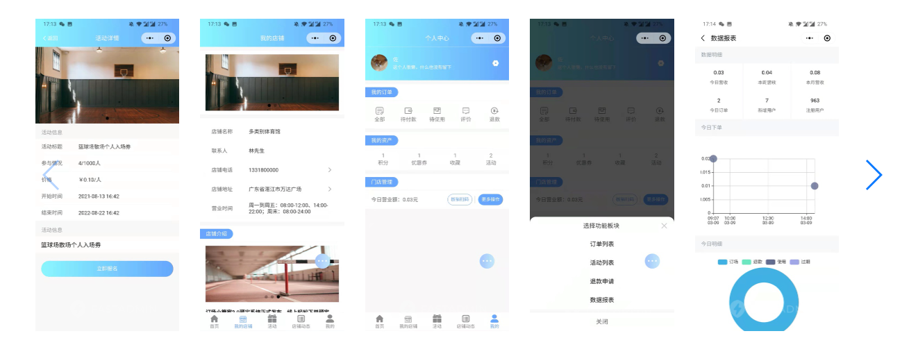 基于ThinkPHP+FastAdmin开发,适用于篮球、足球、排球、网球、乒乓球、羽毛球等场馆订场使用,集成店铺展示、在线下单、在线预约、商家报表、商家处理订单等功能。即买即用,省心省力。
